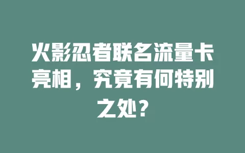火影忍者联名流量卡一亮相就引起了广泛关注,毕竟火影的影响力可不是盖的。这卡刚出,我就去仔细研究了一番,发现它真有不少独特的地方。
