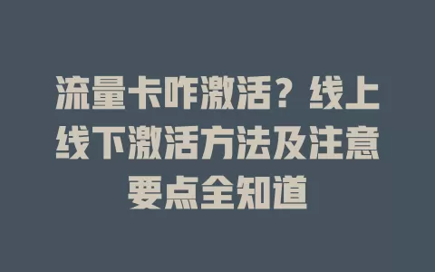 流量卡给咱生活带来不少便利,可咋激活它却让好多新手头疼。别愁,下面就给大伙讲讲线上线下激活流量卡的方法,还有那些得留意的要点。