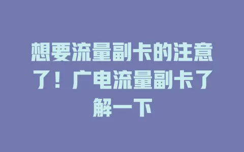 如果你正在考虑办理流量副卡,不妨多了解一下广电流量副卡,说不定它会给你带来意想不到的惊喜呢!