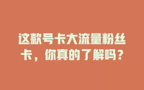 你有没有遇到过流量不够用,关键时刻网络卡顿的糟心事儿?尤其是对于粉丝群体来说,和偶像互动、追直播、刷各种粉丝专属内容,没流量可太让人着急了。号卡大流量粉丝卡就像是一场及时雨,能完美解决这些问题。
