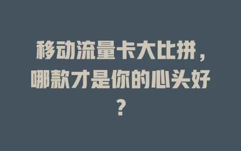 流量卡的选择可太重要了,直接影响咱们上网体验。今天就来好好唠唠移动流量卡,看看哪款能成为你的心头好。